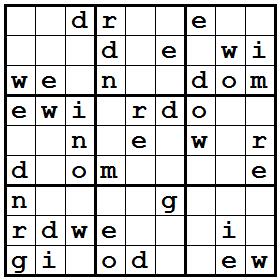 each row, column and 3x3 square must contain unique letters from a special 9-letter word!