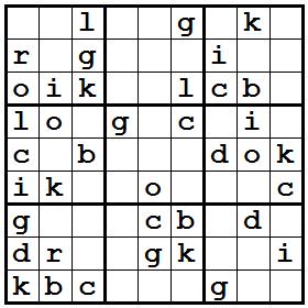 each row, column and 3x3 square must contain unique letters from a special 9-letter word!